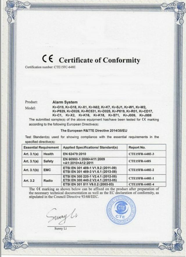 У разі вимкнення постійного джерела живлення, Kerui alarm G18 має вбудовану батарею, яка допоможе їй пропрацювати ще додатково 8 годин. Крім цього — система сповістить Вас про вимкнення електроживлення в мережі.