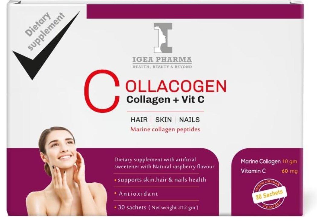 -17%Collacogen + Vit C Морський колаген та Вітамін С ( зы смаком малини) для волосся, шкіри та нігтів 30шт. Єгипет